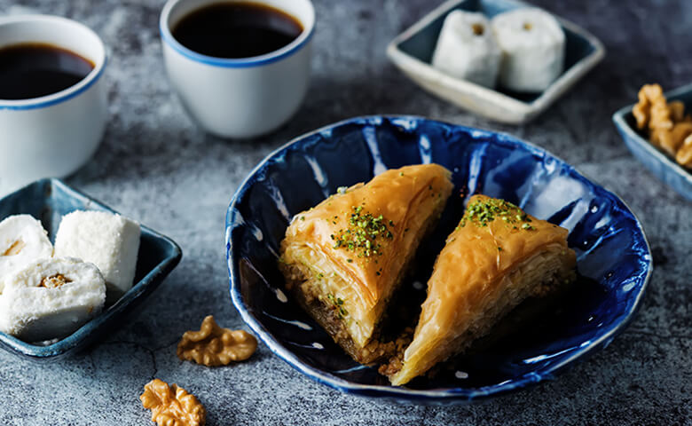 مواد به کار رفته در طرز تهیه باقلوای یزدی شامل گلاب، آرد گندم، بکینگ پودر، شکر، زرده تخم مرغ، روغن، آب، نمک، پودر پسته، هل، پودر بادام، پودر قند و شیر هستند